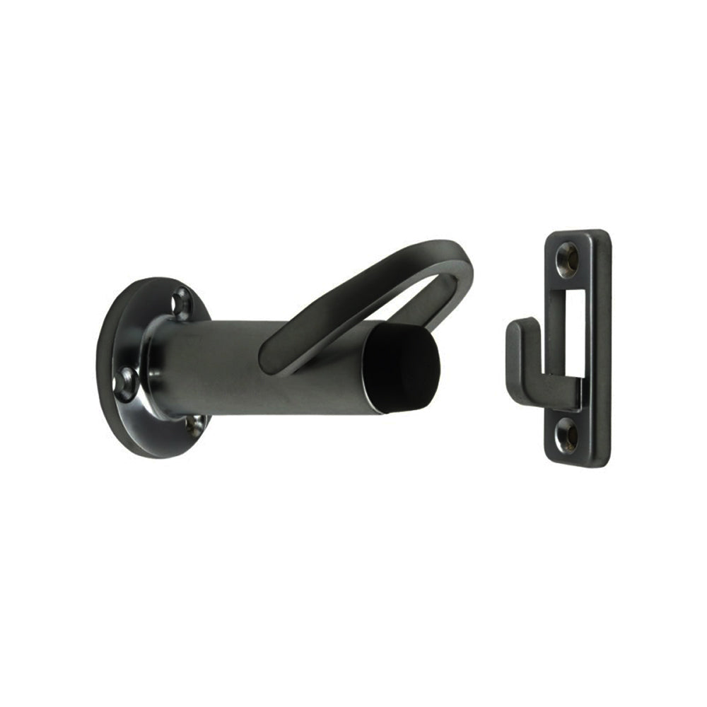 Door Stop used to keep a door open or shut, or to keep a door from opening too wide.