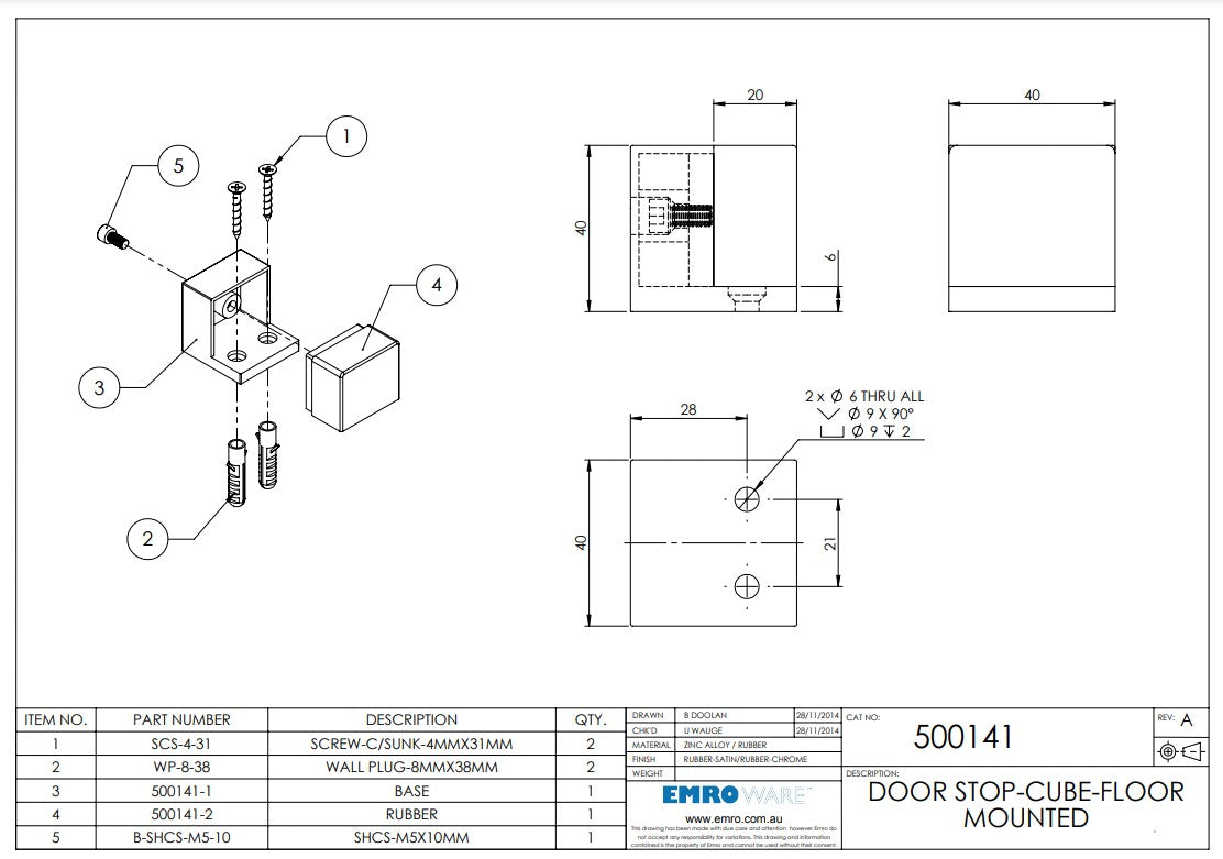 Emro Cube Door Stop is designed to prevent doors from opening too widely, protecting walls and fixtures from potential damage.