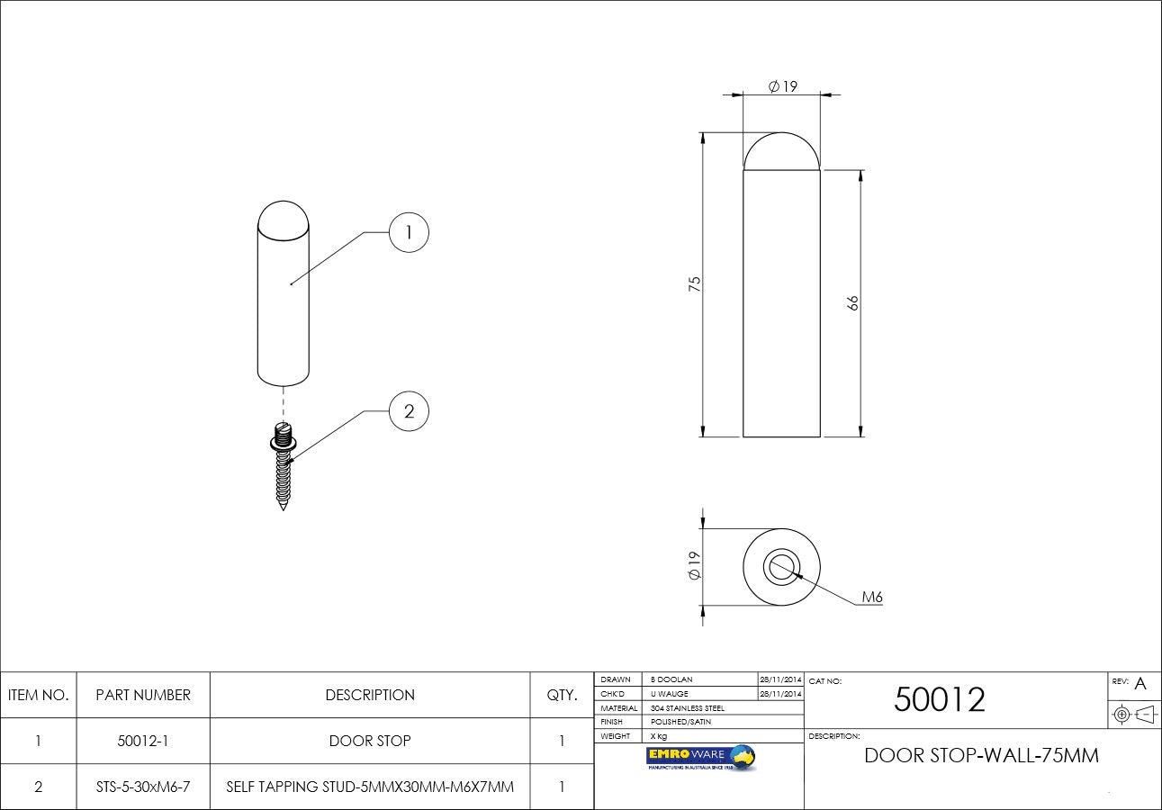 Emro Door Stop Wall Mounted 75mm Matt Black 50012MB