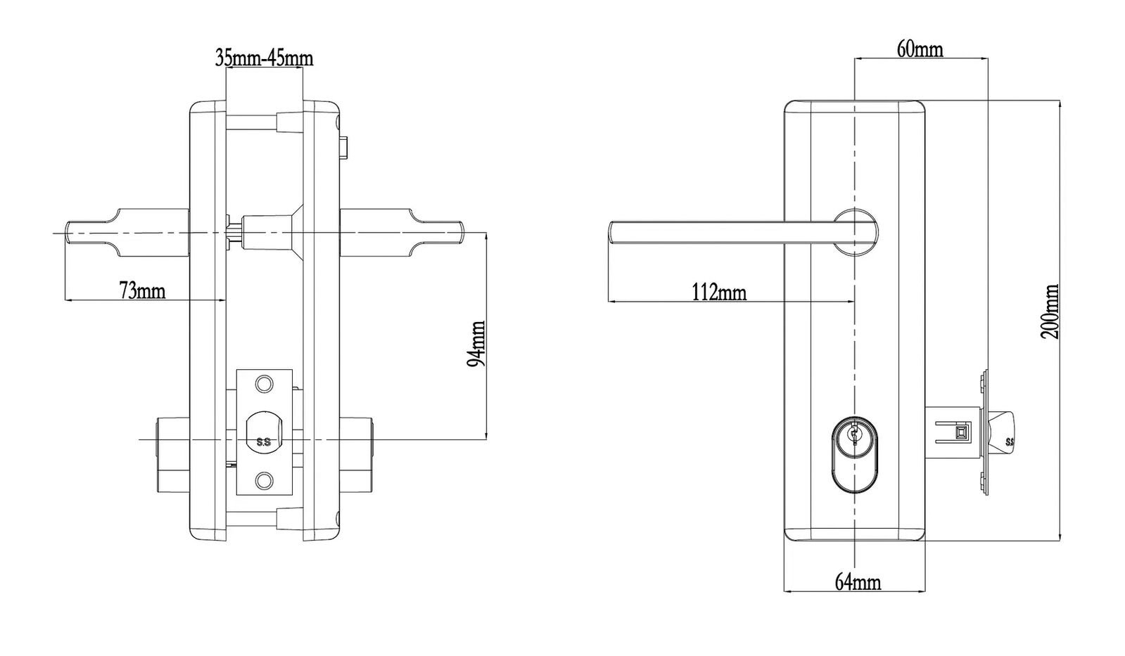 Door Thickness: 35mm - 45mm