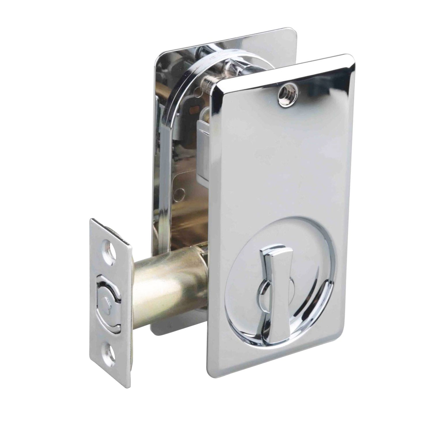 Lockable Cavity Sliding Door Lock Square Clear Pack Satin Chrome Plate 66SPDLSCPCP N2LOK