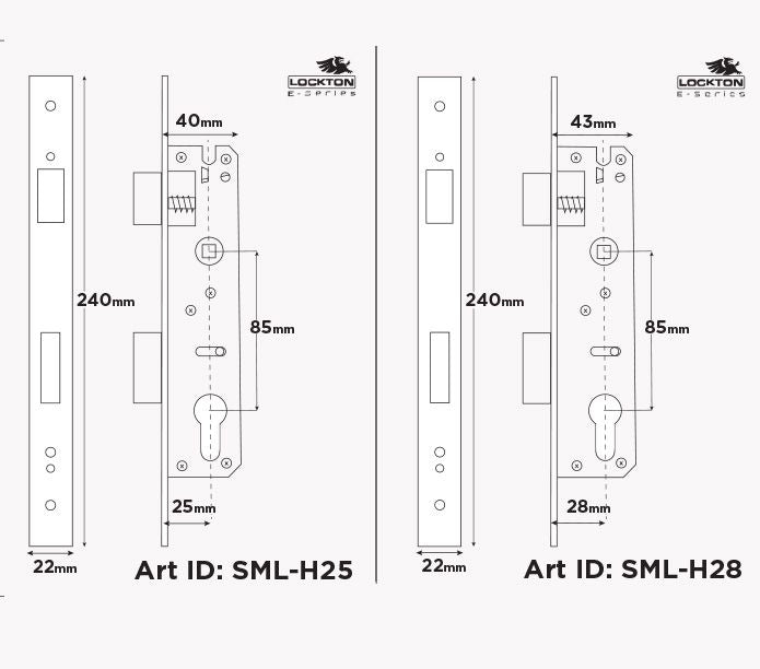 LOCKTON 'E-Series Mortise Lock C-C 85mm 25mm Backset Brushed Satin Chrome