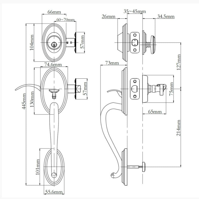 765 SO SC UO/PI L03 BP N2lok Somme Door Handle Single Cylinder with Egg Knob Entrance Set