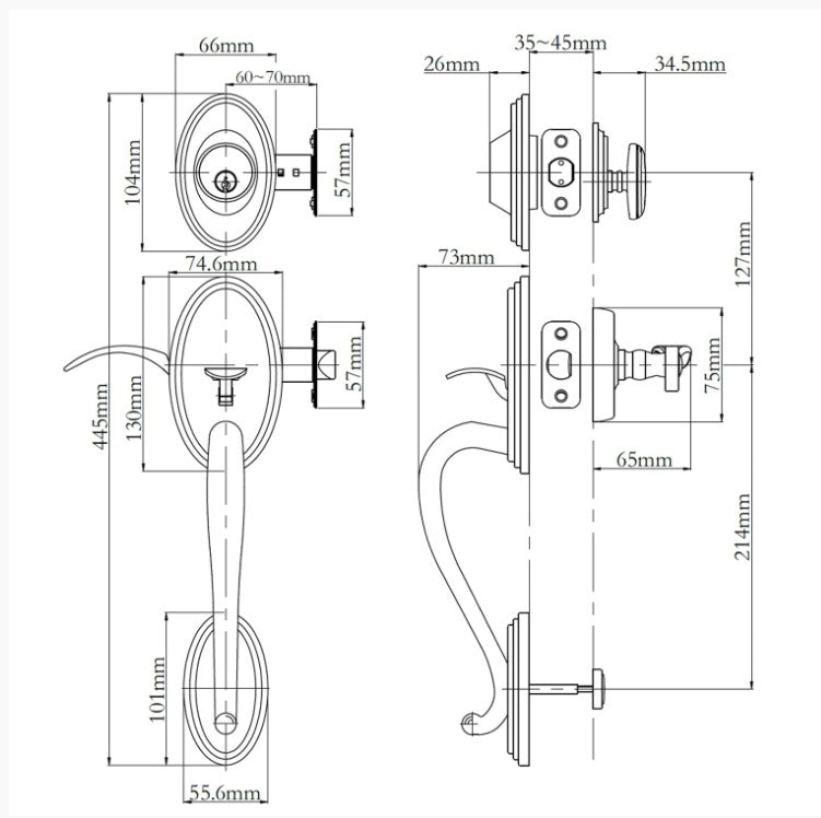 765 SO SC UO/PI SN BP N2lok Somme Door Handle Single Cylinder with Egg Knob Entrance Set